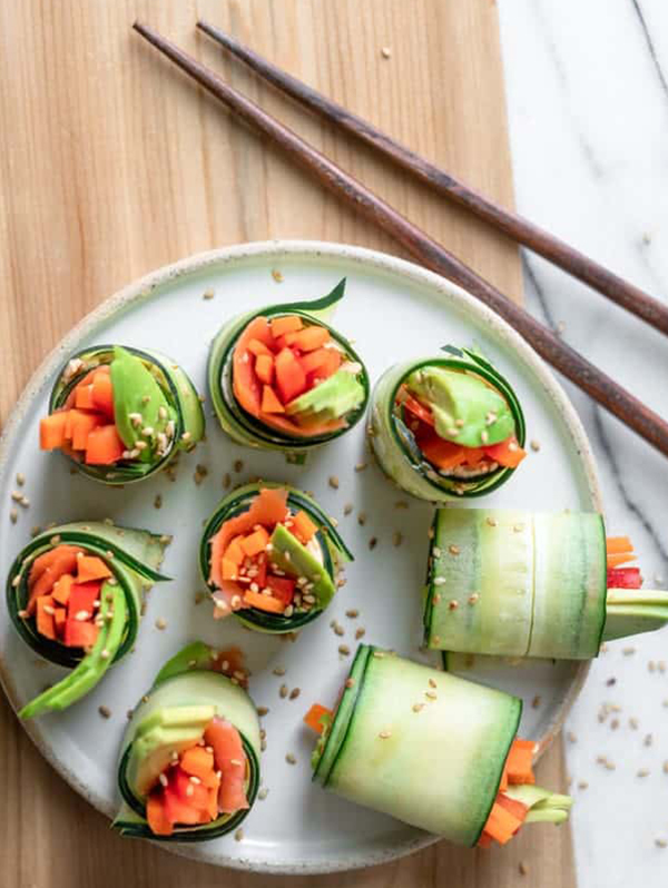 Refreshing cucumber rolls filled with tangy apple relish, offering a crisp, sweet, and savory bite - perfect for light, healthy appetizers.