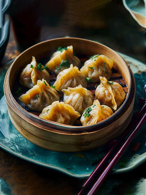Spicy vegetable basil dim sum features tender, steamed dumplings filled with spicy veggies and aromatic basil.